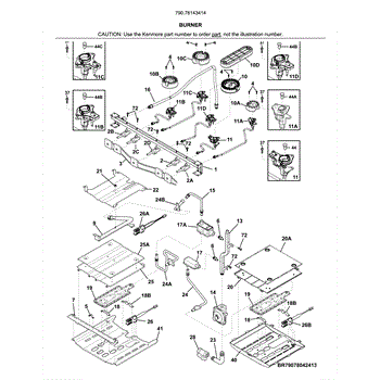 This surface burner ignitor/orifice assembly directs gas through a calibrated orifice and provides the spark to ignite it. Replacing a worn or damaged assembly restores consistent lighting and an even flame on the affected rangetop burner.