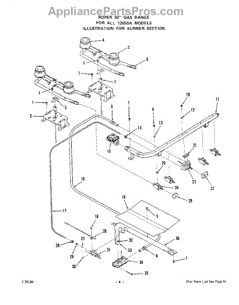 Parts for Roper 1265W0A: 04 - Burner Parts