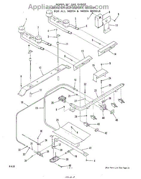 Parts for Roper 1423W1A: 03 - Burner Parts