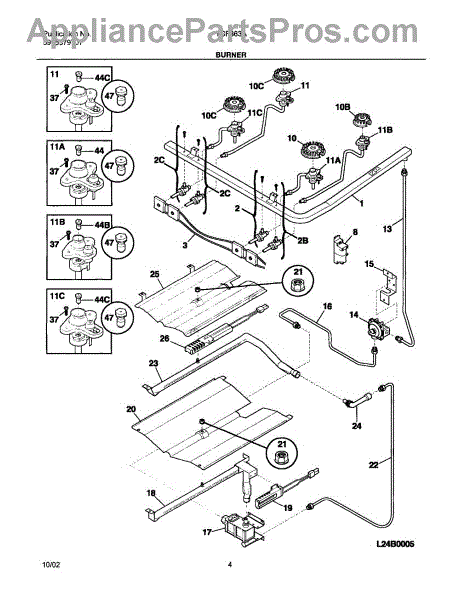 Complete igniter and orifice assembly for gas range burners. Includes igniter, orifice holder, and gas tube. Replace if cracked, broken, or damaged.