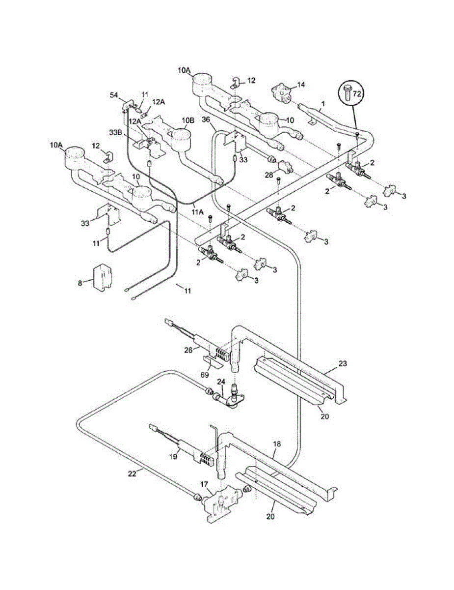 Range oven not heating? Safety valve controls gas flow to burners. Requires voltage testing at igniter connection. Moderate difficulty repair.