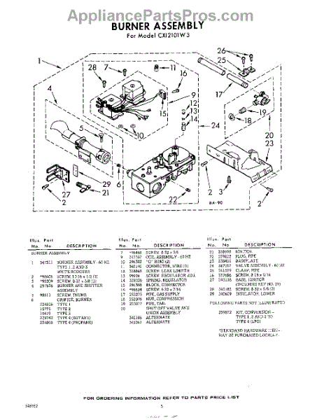 Parts for Whirlpool CXI2101W3: 05 - Burner Parts