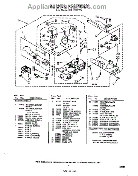 Parts for Whirlpool CXI2101W4: 05 - Burner Parts