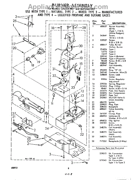 Parts for Whirlpool GCFI2501W2: 08 - Burner Parts