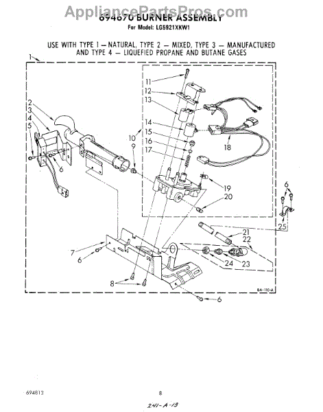 Parts for Whirlpool LG5921XKW1: 05 - Burner Parts