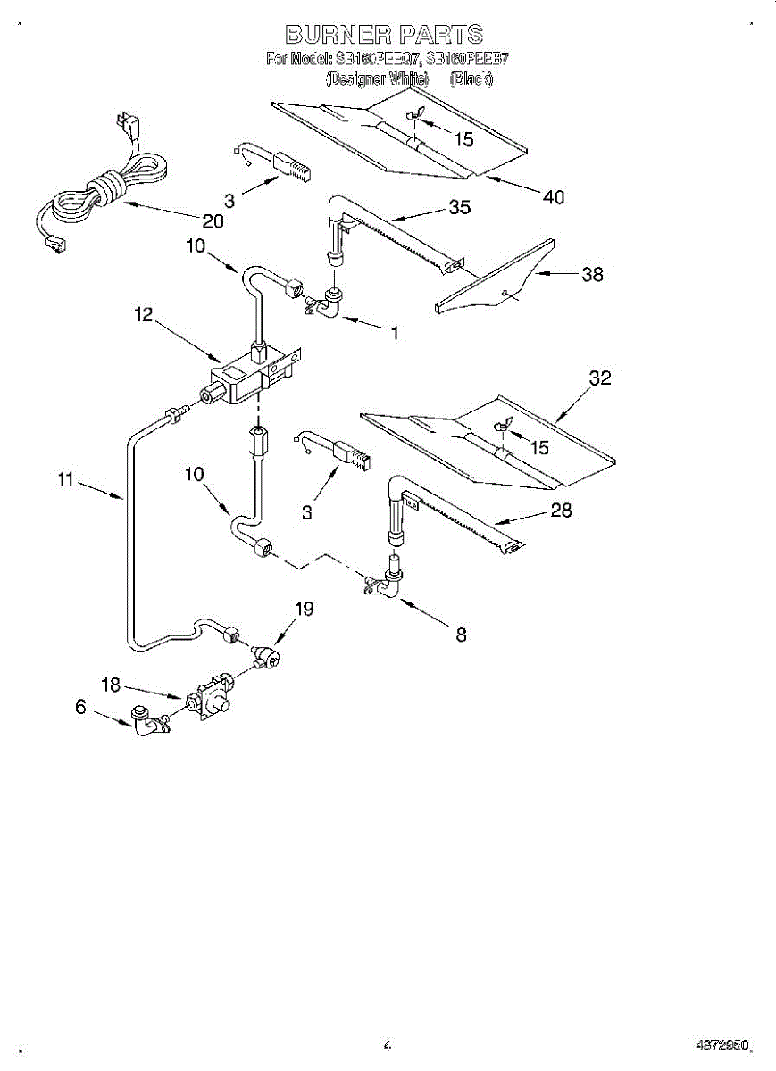 Parts for Whirlpool SB160PEEB7: 03 - Burner Parts