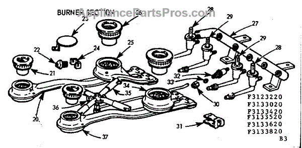 Parts for Kenmore 103.3133020 (1033133020, 103 3133020): Burner Section Parts