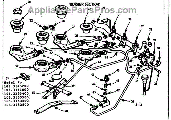 Parts for Kenmore 103.3153000 (1033153000, 103 3153000): Burner Section Parts