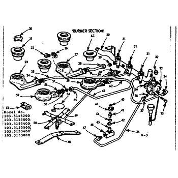 Parts for Kenmore 103.3153600 (1033153600, 103 3153600): Burner Section Parts