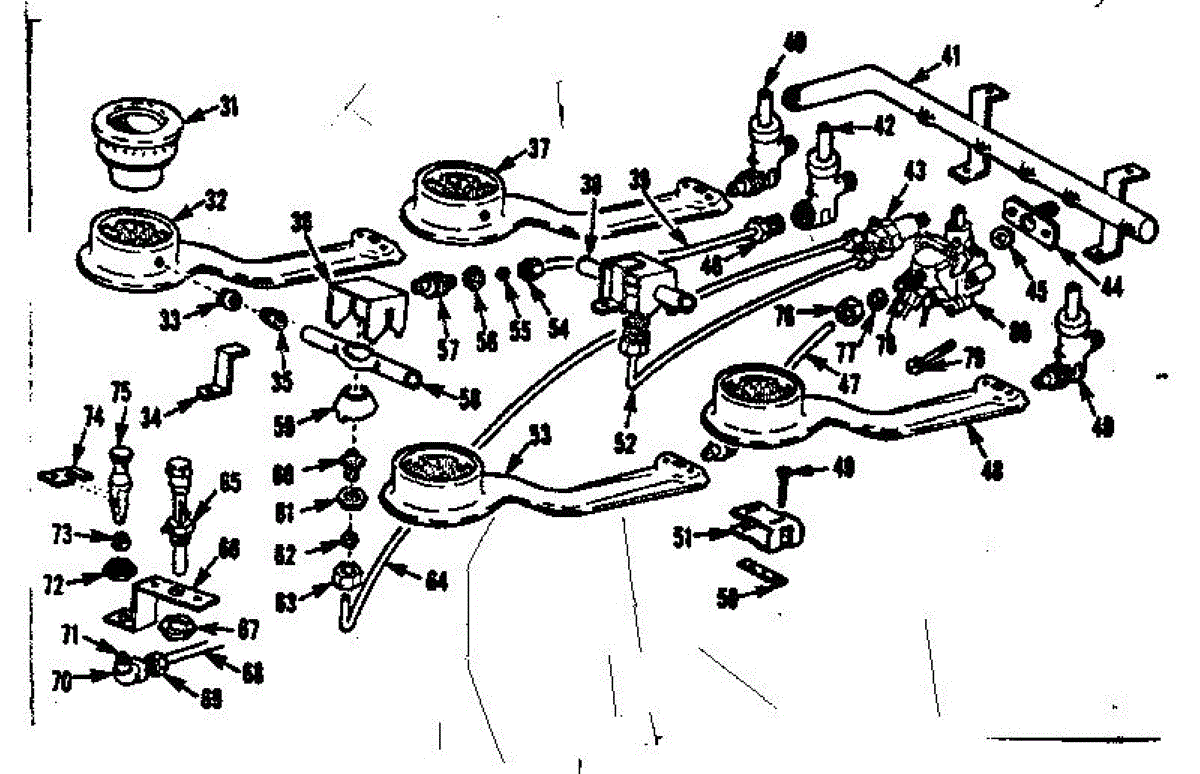 Parts for Kenmore 103.3156502 (1033156502, 103 3156502): Burner Section Parts