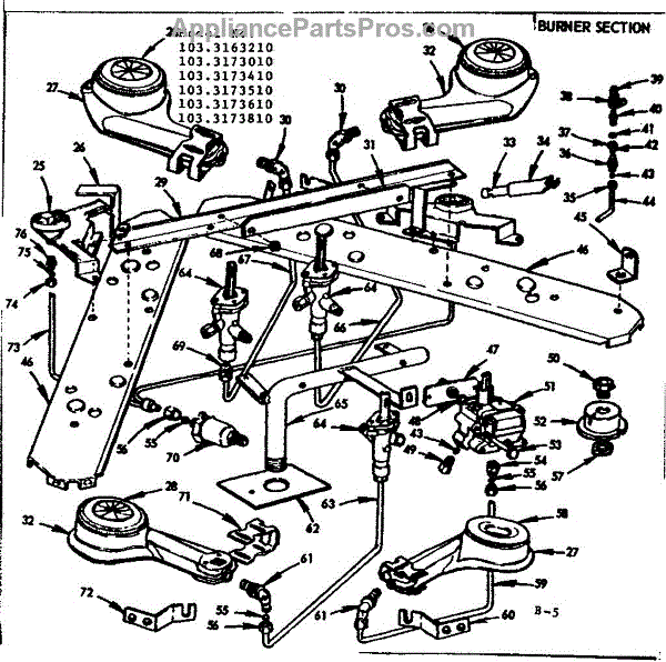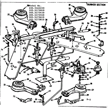 Parts for Kenmore 103.3173410 (1033173410, 103 3173410): Burner Section Parts