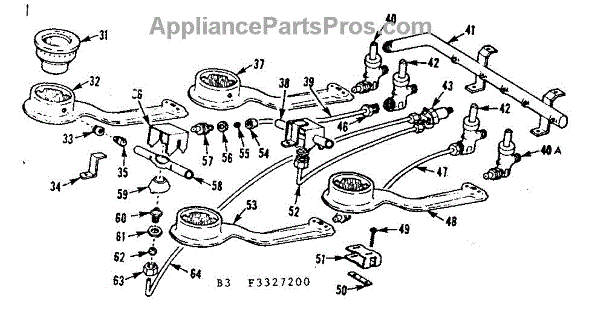 Parts for Kenmore 103.3327200 (1033327200, 103 3327200): Burner Section Parts