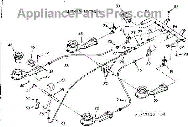 Parts for Kenmore 103.3327510 (1033327510, 103 3327510): Burner Section Parts