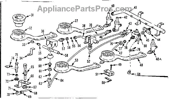 Parts for Kenmore 103.3347040 (1033347040, 103 3347040): Burner Section Parts