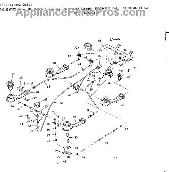 Parts for Kenmore 103.3347212 (1033347212, 103 3347212): Burner Section Parts
