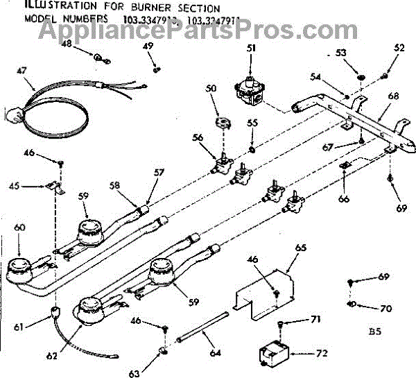 Parts for Kenmore 103.3347910 (1033347910, 103 3347910): Burner Section Parts