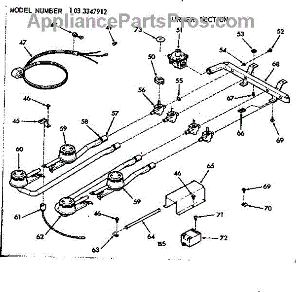 Parts for Kenmore 103.3347912 (1033347912, 103 3347912): Burner Section Parts