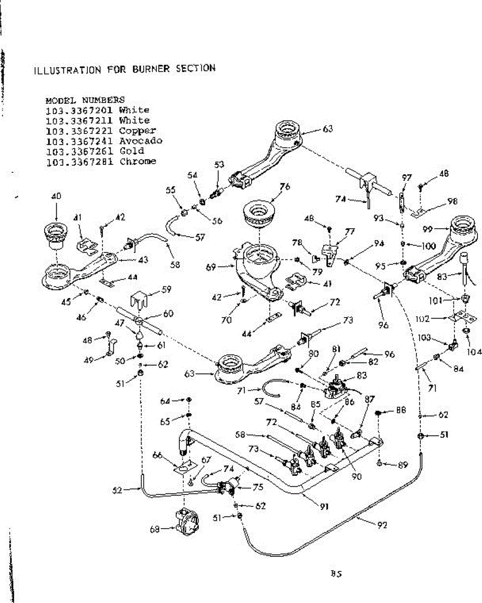 Parts for Kenmore 103.3367221 (1033367221, 103 3367221): Burner Section Parts