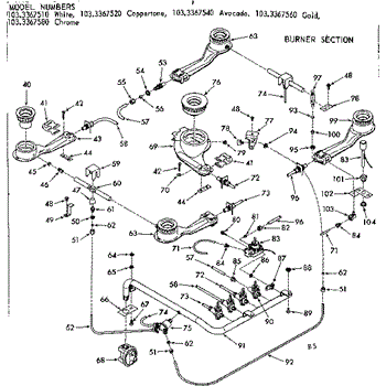 Parts for Kenmore 103.3367510 (1033367510, 103 3367510): Burner Section Parts