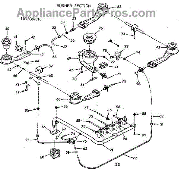 Parts for Kenmore 103.3367811 (1033367811, 103 3367811): Burner Section Parts