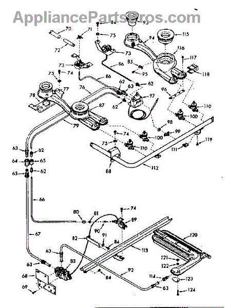 Parts for Kenmore 103.6037000 (1036037000, 103 6037000): Burner Section Parts