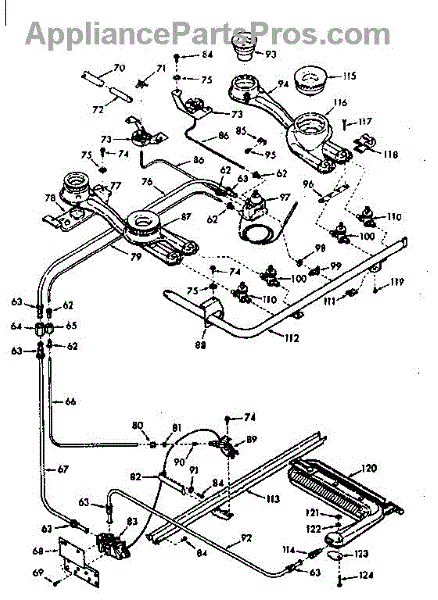 Parts for Kenmore 103.6077020 (1036077020, 103 6077020): Burner Section Parts