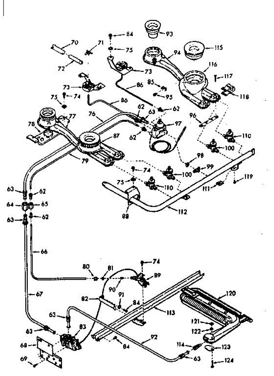 Parts for Kenmore 103.6077060 (1036077060, 103 6077060): Burner Section Parts