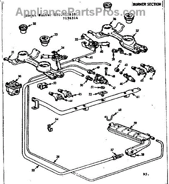 Parts for Kenmore 103.713631 (103713631, 103 713631): Burner Section Parts
