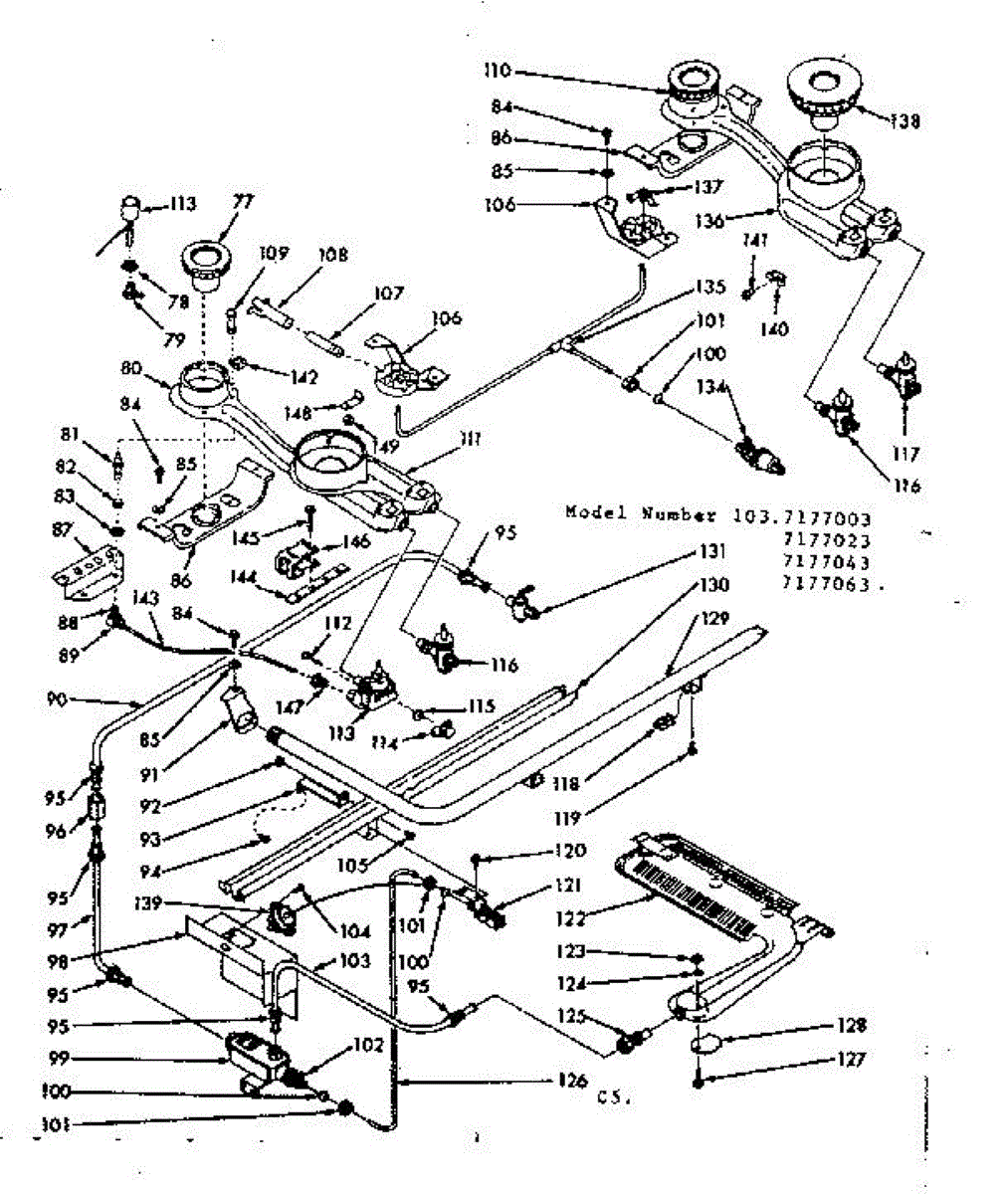 Parts for Kenmore 103.7177003 (1037177003, 103 7177003): Burner Section Parts