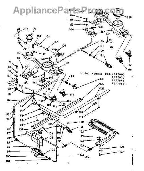Parts for Kenmore 103.7177043 (1037177043, 103 7177043): Burner Section Parts