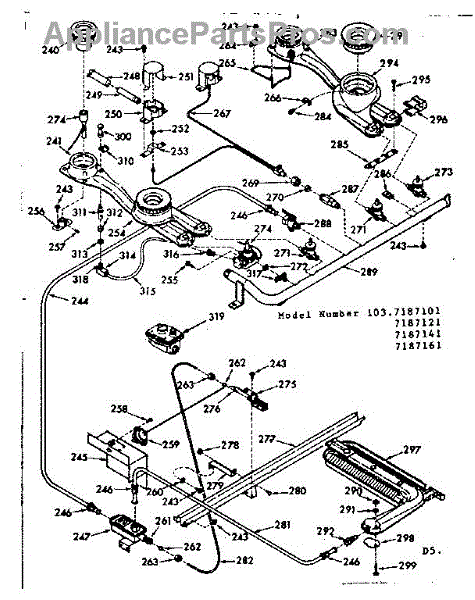 Parts for Kenmore 103.7187101 (1037187101, 103 7187101): Burner Section Parts