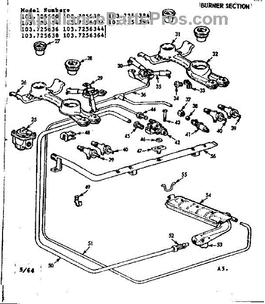 Parts for Kenmore 103.7256364 (1037256364, 103 7256364): Burner Section Parts