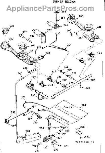 Parts for Kenmore 103.7277460 (1037277460, 103 7277460): Burner Section Parts