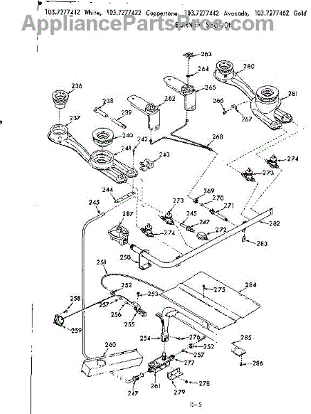 Parts for Kenmore 103.7277462 (1037277462, 103 7277462): Burner Section Parts
