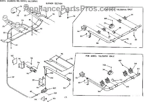 Parts for Kenmore 103.7287811 (1037287811, 103 7287811): Burner Section Parts