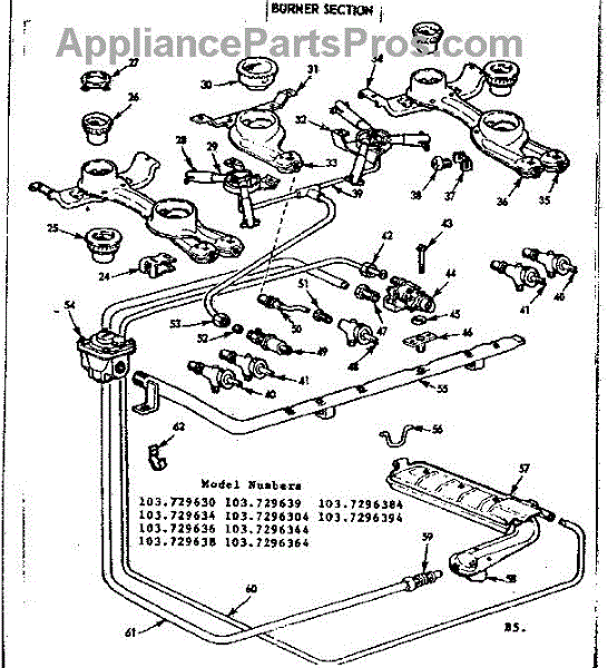 Parts for Kenmore 103.7296364 (1037296364, 103 7296364): Burner Section Parts