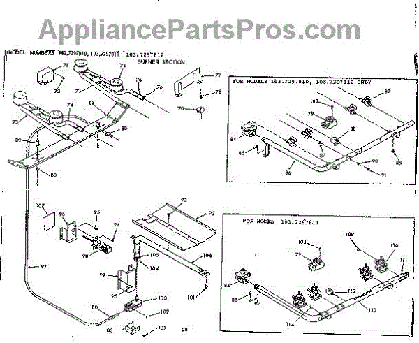 Parts for Kenmore 103.7297812 (1037297812, 103 7297812): Burner Section Parts