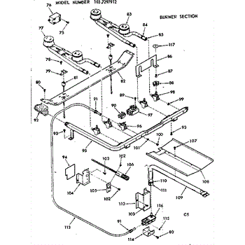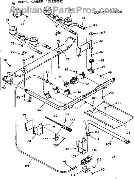 Parts for Kenmore 103.7297912 (1037297912, 103 7297912): Burner Section Parts