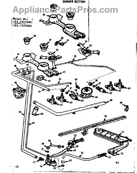 Parts for Kenmore 103.7325000 (1037325000, 103 7325000): Burner Section Parts