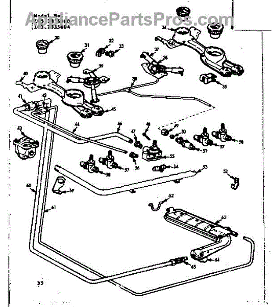 Parts for Kenmore 103.7335004 (1037335004, 103 7335004): Burner Section Parts
