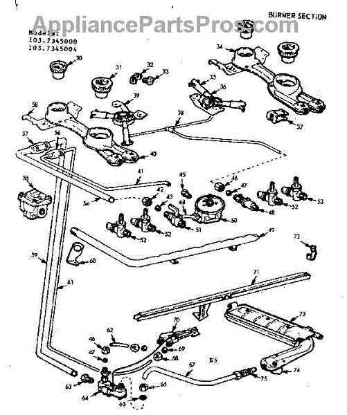 Parts for Kenmore 103.7345004 (1037345004, 103 7345004): Burner Section Parts