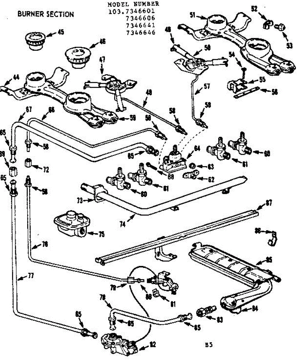 Parts for Kenmore 103.7346641 (1037346641, 103 7346641): Burner Section Parts