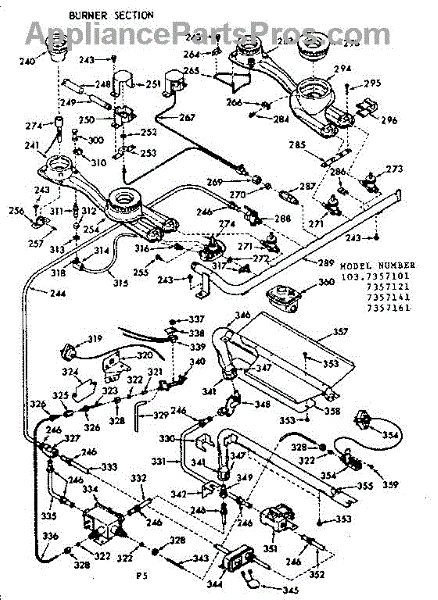 Parts for Kenmore 103.7357161 (1037357161, 103 7357161): Burner Section Parts
