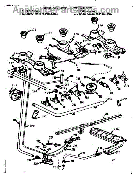 Parts for Kenmore 103.7365000 (1037365000, 103 7365000): Burner Section Parts