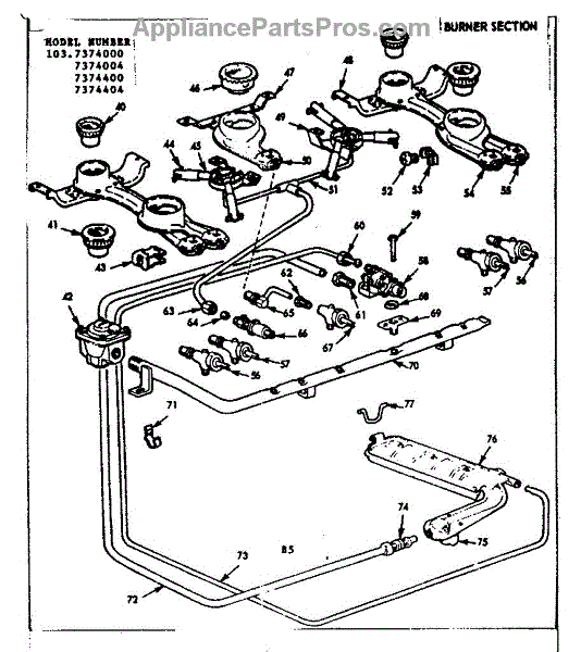 Parts for Kenmore 103.7374000 (1037374000, 103 7374000): Burner Section Parts