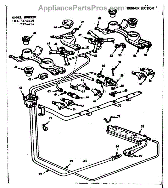 Parts for Kenmore 103.7374414 (1037374414, 103 7374414): Burner Section Parts