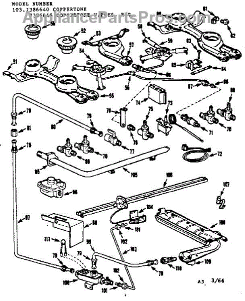 Parts for Kenmore 103.7386645 (1037386645, 103 7386645): Burner Section Parts