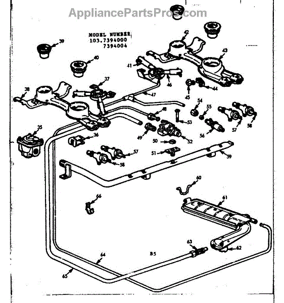 Parts for Kenmore 103.7394004 (1037394004, 103 7394004): Burner Section Parts