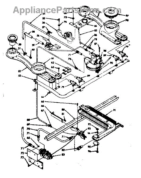 Parts for Kenmore 103.7406800 (1037406800, 103 7406800): Burner Section Parts