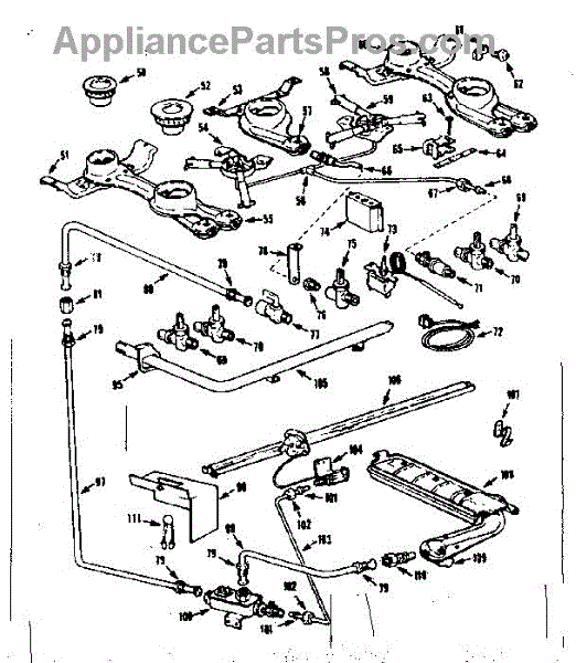 Parts for Kenmore 103.7426642 (1037426642, 103 7426642): Burner Section Parts